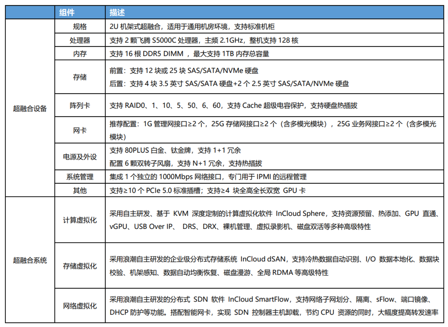 搭载2颗飞腾S5000C处理器、16根DDR5 DIMM内存,可给予强劲计算性能;软硬协同深度优化,内置分布式存储加速、智能网络加速等关键技术。采用加速引擎、全栈RDMA的数